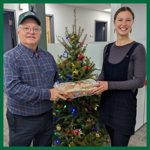 En ce qui concerne les Producteurs de grains de la Mauricie, ils ont remis un don de pains, accompagné d’une contribution monétaire de 250 $ à Moisson Mauricie / Centre-du-Québec. Sur la photo, Jean Damphousse, vice-président des Producteurs de grains de la Mauricie est accompagné de Cloé Loiselle, coordonnatrice au développement de l’approvisionnement chez Moisson Mauricie / Centre-du-Québec.